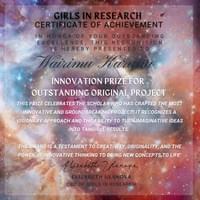 At every Demo Day, the executive board of Girls In Research awards 1-2 select scholars with a special merit prize to the finished projects of exceptional quality. The two prizes are the Girls In Research Verity Prize For Excellence In Research and the Girls In Research Innovation Prize For Outstanding Original Project.