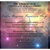 Every scholar who completes a Girls In Research program is awarded a bespoke made Girls In Research certificate at their Demo Day.